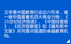 自诞生之日起,万学凭借不同寻常的科学精神与教育智慧,连续荣获了中国权威机构和著名媒体的多项顶级嘉奖与最高评估,从技术、质量到规模一举超越了五十七万家教育机构,从而打破中国教育行业50年历史记录。