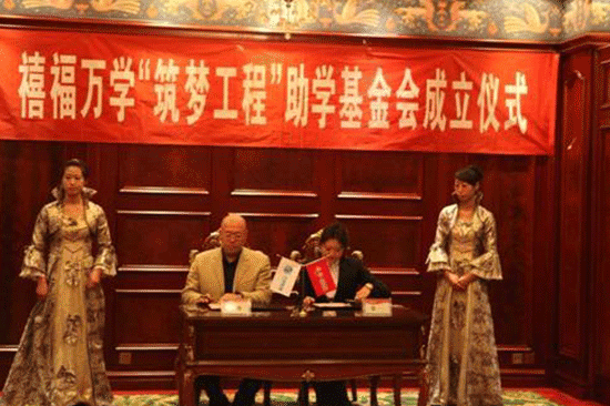 2013年11月29日,万学教育集团与禧福集团有限公司合作设立的《禧福万学“筑梦工程”助学基金》成立及启动仪式在青岛蘭公馆大饭店隆重举行。该基金作为万学教育集团与禧福集团系列合作协议的一部分,将致力于帮助贫困地区大学生在校期间的学业完成以及帮助他们实现就业。签约仪式上,双方宣布联合创立大学生创业孵化基地,帮助有志向的大学生完成创业梦想。